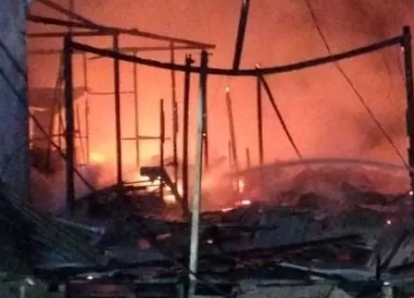Kebakaran yang terjadi sekitar pukul 02.30 WITA menghanguskan lima rumah semi permanen dan menyebabkan satu orang meninggal dunia serta dua warga lainnya mengalami luka-luka.