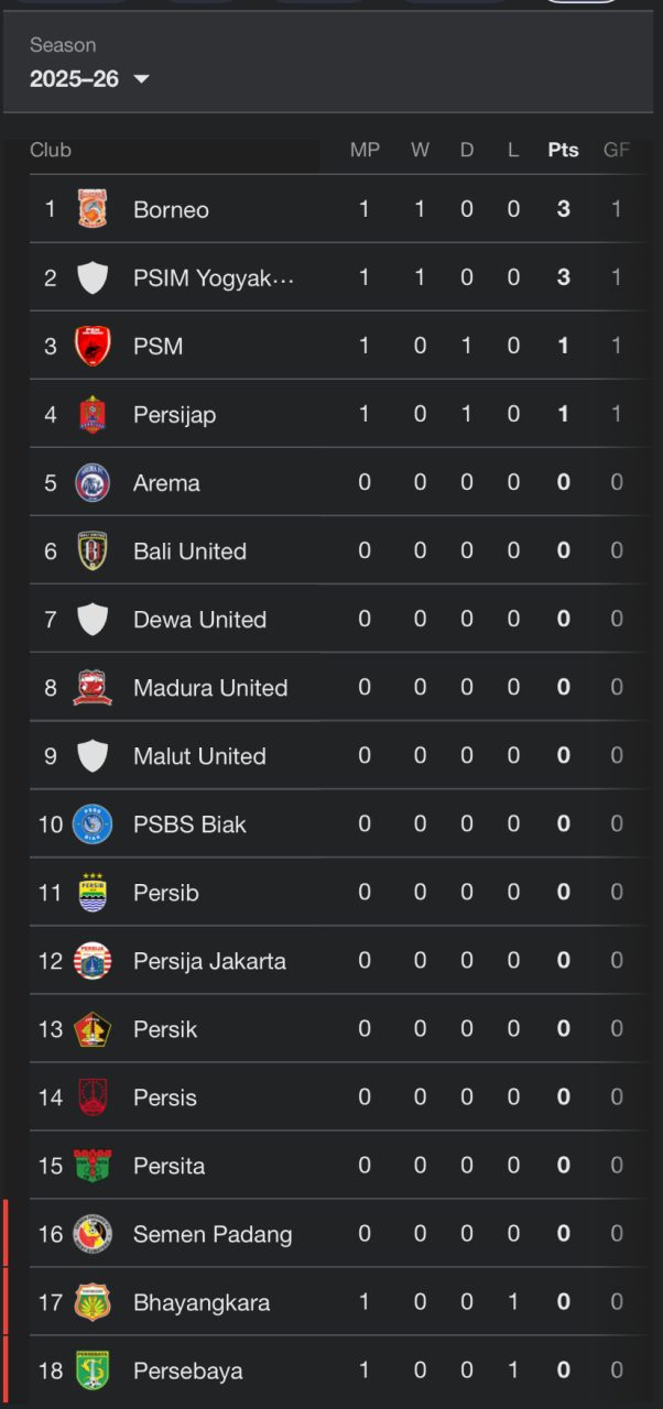 Meski klasemen masih sangat dini, kemenangan di laga pembuka menjadi modal berharga bagi Borneo FC dan PSIM untuk mengarungi musim panjang ini.