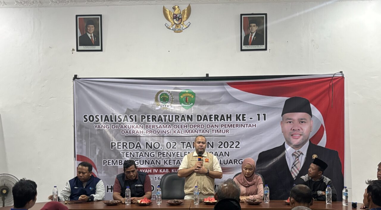 Kaltimdaily.com, Kutai Kartanegara– DPRD Provinsi Kalimantan Timur melaksanakan kegiatan penyebarluasan Peraturan Daerah Provinsi Kaltim Nomor 2 Tahun 2022 tentang Penyelenggaraan Pembangunan Ketahanan Keluarga, Jumat (14/11/2025) malam, di Jl Poros RT 6 Desa Beringin Agung, Kecamatan Samboja, Kutai Kartanegara.